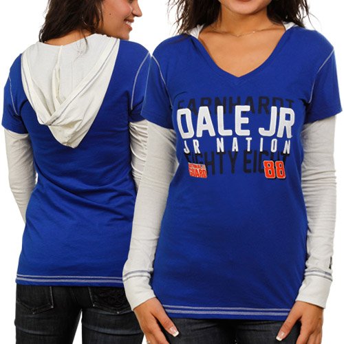 Chase Authentics Dale Earnhardt Jr. Ladies Double Layer Hooded Long Sleeve Premium T-Shirt - Royal Blue/White (Medium) Review